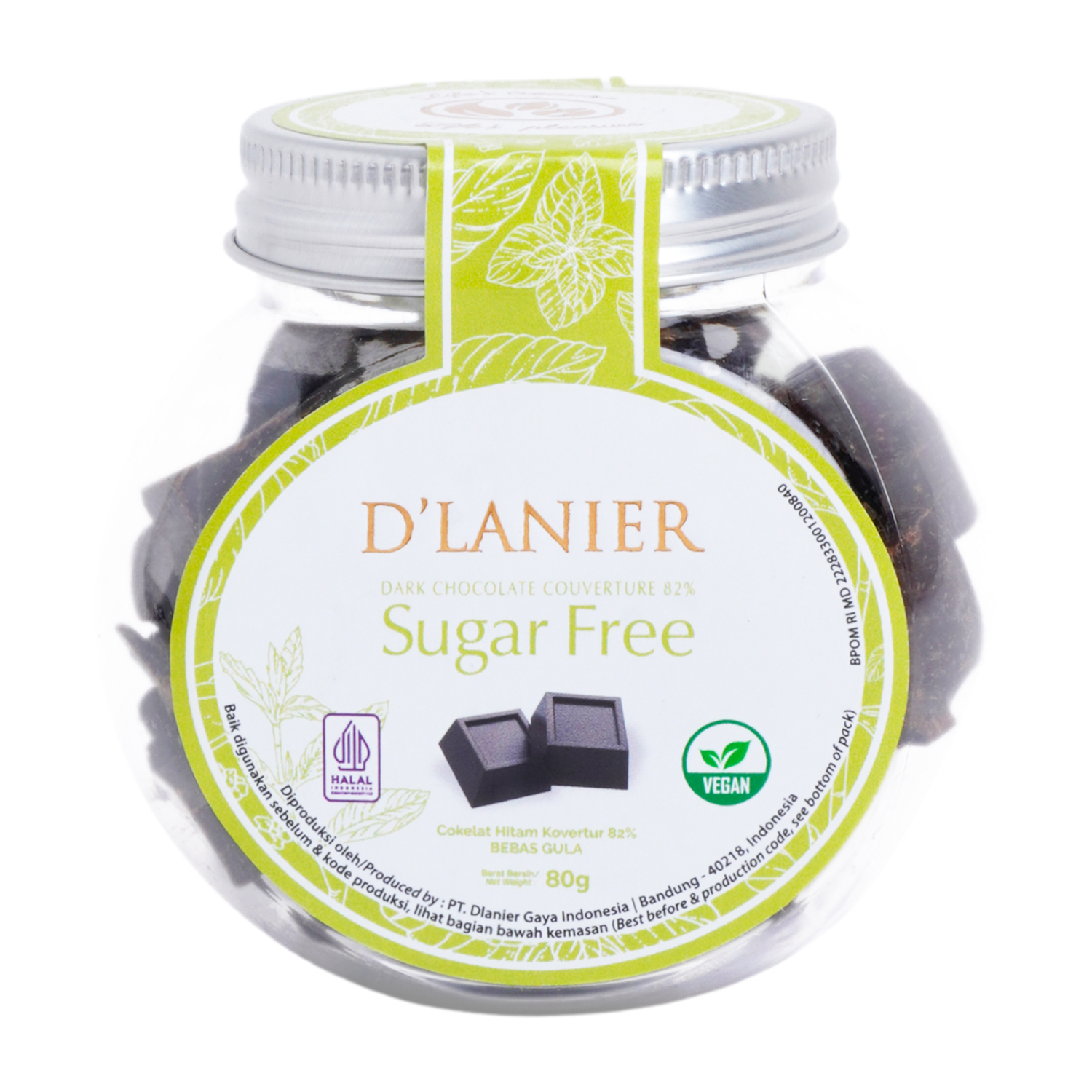D’Lanier Sugar Free Dark Chocolate 82% with Naturally sweetened from Stevia – 80 gr